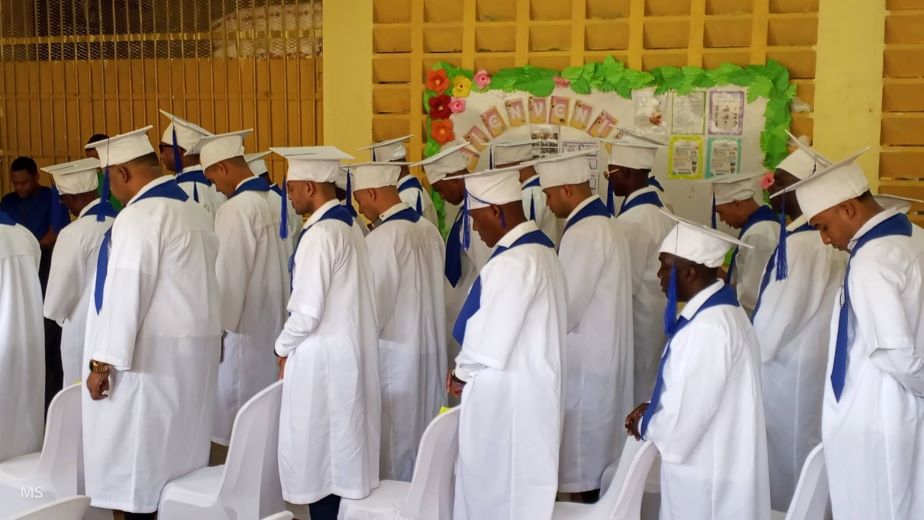 Monte Plata. El Centro de Corrección y Rehabilitación CCR–9 Monte Plata y el Centro Educativo El Libertador celebraron la graduación de 25 internos que completaron sus estudios secundarios como bachilleres, correspondientes a las promociones 2022, 2023 y 2024-2025, en un acto que resaltó el avance del modelo educativo implementado dentro del recinto.