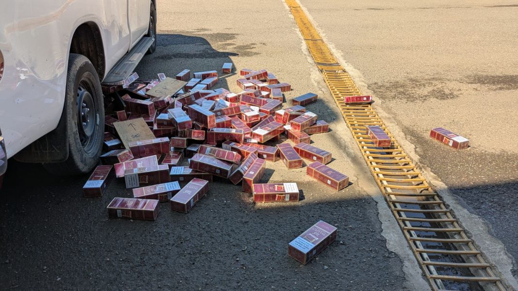 En el primer caso, fue detenido Alquímides Bueno Rodríguez, quien conducía una camioneta Toyota Hilux blanca, placa L479055, en la que transportaba 499 paquetes de cigarrillos marca Capital, equivalentes a 99,800 unidades.